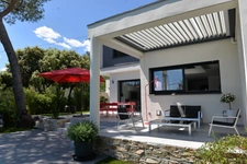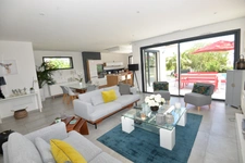 Maison contemporaine construite en 2018, constituée en rez-de-chaussée d'une Pièce de vie de 55m² avec cuisine Américaine ouvrant par de larges baies vitrées sur la Terrasse exposée Sud-Ouest, d'une suite Parentale avec un lit double de 160cm, une salle d'eau avec douche et double vasque, d'une buanderie avec lave linge et sèche linge et d'un WC. A l'étage vous trouverez quatre chambres avec placard (trois avec un lit double de 140cm et une avec un lit double de 160cm), une salle de bains avec baignoire et double vasque, un wc séparé. Pergola bio-climatique. Clim réversible gainée. Piscine au sel.