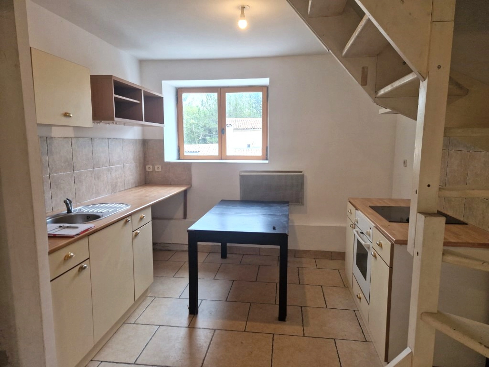 En plein coeur du village, cet appartement T2 situé au 1er étage dispose d'un séjour-cuisine semi équipée de 23m², à l'étage, 1 chambre, une salle d'eau -WC .