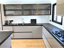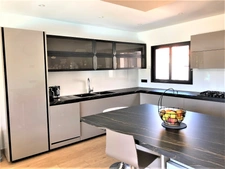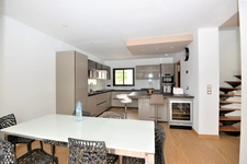 Elle se compose en rez-de-chaussée d'une grande cuisine équipée semi-ouverte de plus de 23 m² avec une arrière cuisine, d'un salon donnant accès à la terrasse, de 2 chambres possédant chacune une salle d'eau ainsi qu'une chambre avec salle de bains, d'une buanderie, d'un bureau et d'un wc.