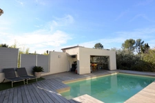 PRADES-LE-LEZ- Dans quartier calme, proche des commodités agréable maison de 150 m² habitables de plain-pied comprenant très bel espace salon/ cuisine équipée donnant sur une terrasse et un cellier. D'un coté de la maison trois chambres , un bureau, une salle d'eau se partagent l'espace. Une suite parentale complètent ce bien lumineux et moderne. Le tout sur un terrain de 780 m² avec piscine, pool house tout équipé, et dépendance de rangement. Le plus appartement T2 de 32 m² complètement indépendant pouvant apporter un revenu locatif.